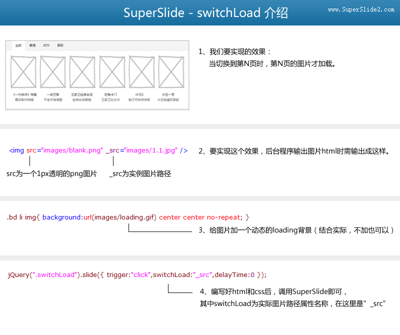 jQuery("#switchLoad").slide({ trigger:"click",switchLoad:"_src",delayTime:0 });