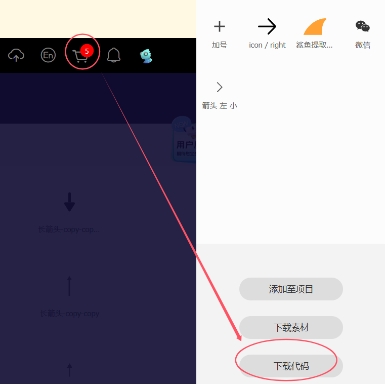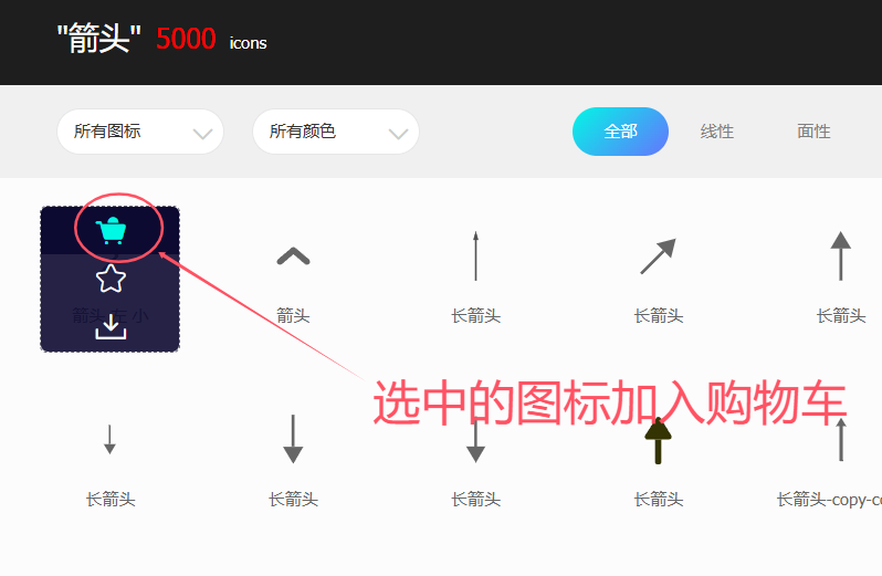 第三步:挑选相应图标并获取字体编码,应用于页面